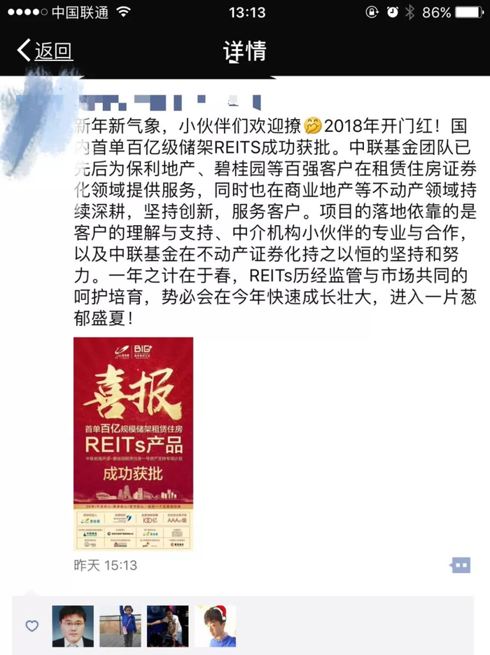 这不是管理人中联基金在住房租赁领域的首秀,2017年10月中联基金获批首单住房租赁储架发行的REITs-保利租赁,规模50亿,热搜霸占许久之后,这单民企代表的碧桂园储架租赁REITs又接踵而至,国企民企双开花,可喜可贺。
