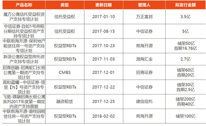 根据中国资产证券化分析网cnabs统计,截止2月6日,市面上已获批的长租公寓ABS详情: