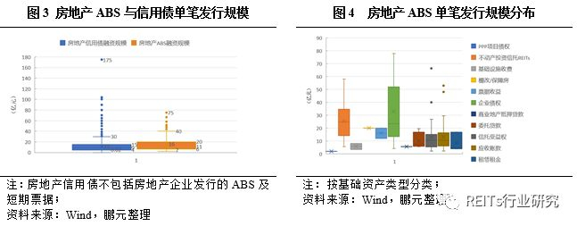 3、房地产ABS的单笔规模大于房地产信用债的单笔规模