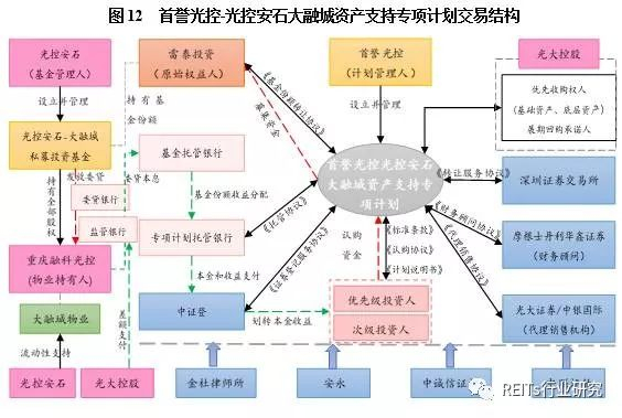 光控安石设立“首誉光控大融城私募投资基金”,并由上海雷泰(原始权益人)认缴25亿元获得全部私募基金份额。首誉光控(计划管理人)设立专项计划,以募集资金购买取得上海雷泰所持私募基金的全部基金份额。