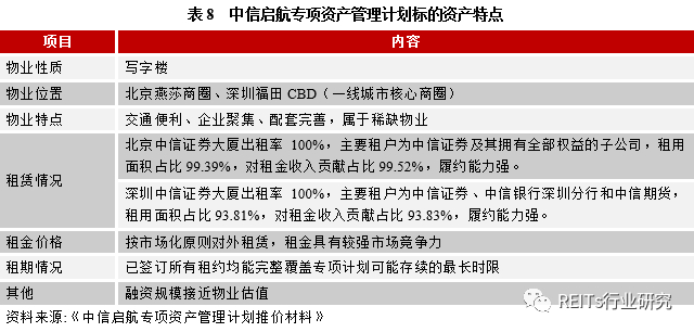 中信启航的标的资产为北京中信证券大厦和深圳中信证券大厦,其租户履约能力强,租期长期、租金具有较强市场竞争力,在专项计划存续期间,两处物业能够实现稳定的经营收入。