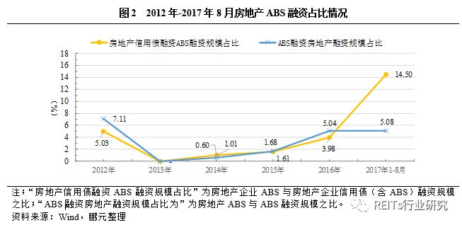 我国房地产资产证券化最早可追溯至2005年。越秀房地产投资信托基金成功在香港挂牌上市,成为内地房产第一只真正意义的不动产信托基金(REITs)。在国内市场上,虽然早在2005年已经开始试点发行资产支持证券,但是在资产支持证券早期试点期间主要为由银行发起,并未涉及到房地产企业。2009年初,中国人民银行会同有关部门形成了REITs初步试点的总体构架,但由于国内相关法律法规仍不完备,REITs一直未能正式启动。