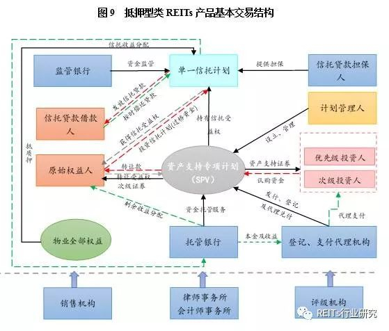 抵押型REITs不涉及不动产产权的转移,是以抵押贷款的收益权为基础资产发证券化产品,在交易结构上与商业房地产抵押贷款资产证券(CMBS)基本相同。