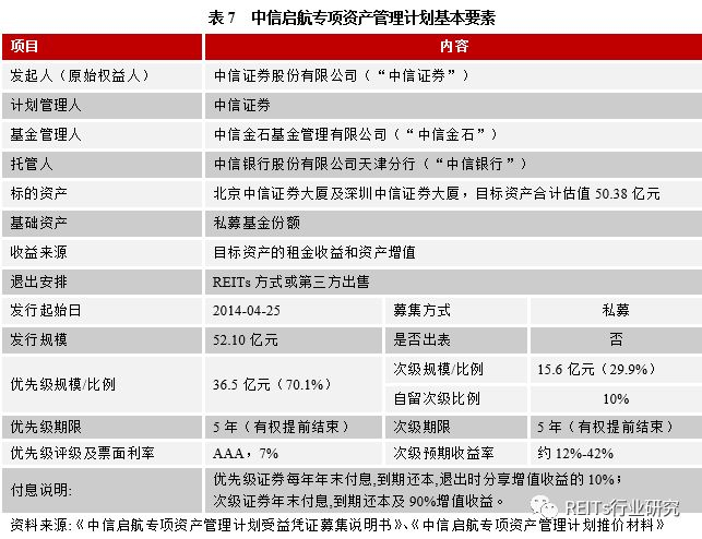 2014年5月,中信证券发起“中信启航专项资产管理计划”(以下简称“中信启航”)挂牌交易,成为我国第一单权益型REITs产品,其交易结构为类REITs结构。