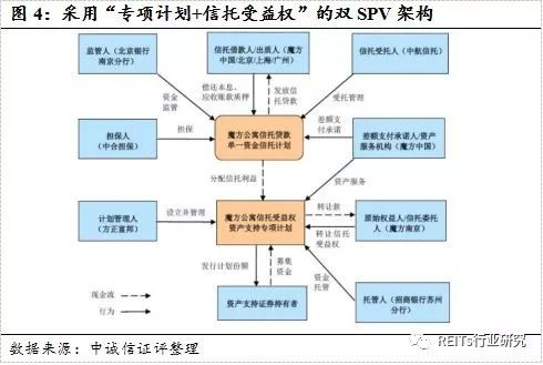 自如和魔方一样皆采用了双SPV的交易结构,因为如果直接以收益权作为基础资产,当发生底层资产所有权人破产、或者底层所有权变更的情况时,专项计划单SPV结构在现有的法律框架下,很难行使对新所有权人的权利主张。而通过信托计划的双SPV结构,专项计划依然可以通过信托计划,向融资人进行追偿,风险得到了隔离。