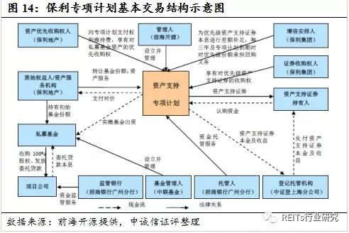 保利租赁住房REITs的交易结构为:认购人通过与管理人(前海开源)签订《认购协议》,将认购资金以专项资产管理方式委托管理人管理,管理人设立并管理专项计划,认购人取得资产支持证券,成为资产支持证券持有人。原始权益人(保利地产)基于其与基金管理人(中联基金)、基金托管人(招商银行广州分行)签署的《基金合同》、《基金份额认购书》而持有私募基金全部基金份额。前海开源于专项计划设立日(该日亦为“份额取得日”)起取得私募基金基金份额,成为基金份额持有人,享有私募基金投资收益。
