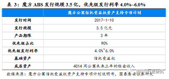 底层资产为魔方公寓租金, 基础资产为信托受益权
