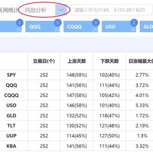 通过新浪财经“ETF精选”区间统计的“风险分析”工具,投资者可以查询1—20个投资标的在特定时间窗口的历史波动率、最大回撤等量化指标,有助于客观了解证券历史价格表现所隐含的风险特征。这里所谓的“投资标的”,目前支持美国及香港市场的指数、个股、ETF。“ETF精选”收录了主要资产的典型代理。