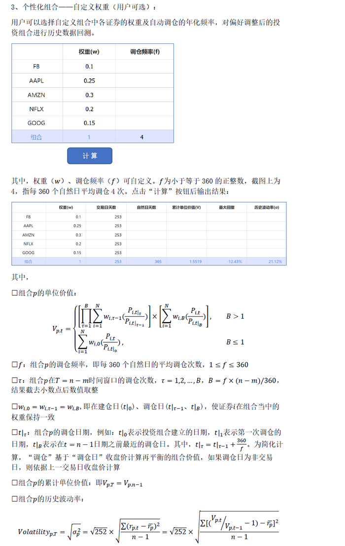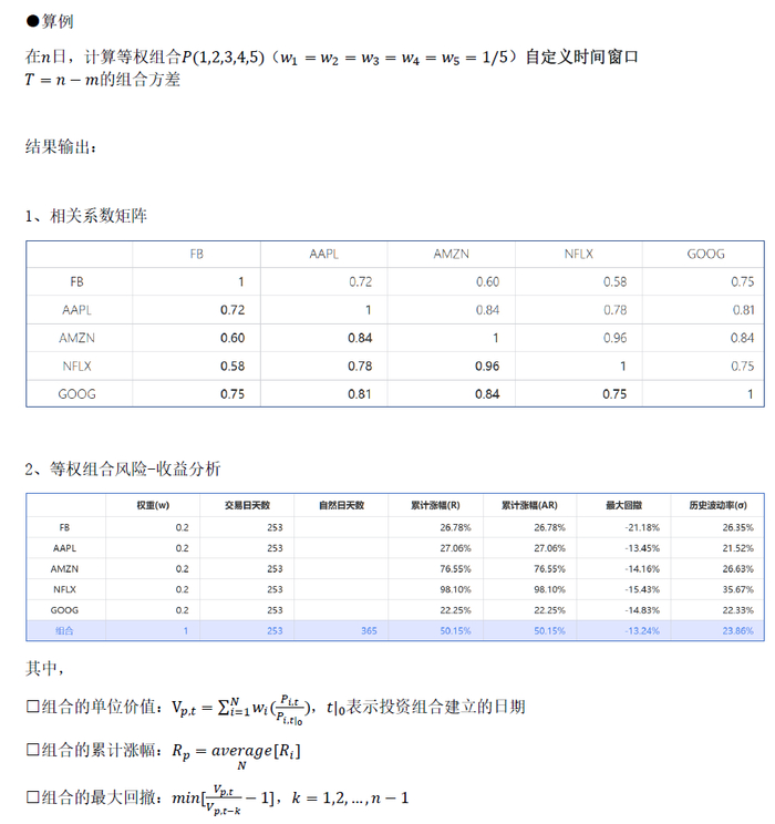 ⭕以下为“组合分析”采用的计算方法: