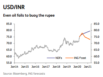 •3月初爆发的油价战未能支撑印度卢比,印度卢比(兑美元)本月迄今为止下跌了4%。持续增加的银行压力使市场情绪低落,这种负面影响超过了油价下跌带来的正面影响,进而推动印度卢比走软,美元兑印度卢比汇率达到75。