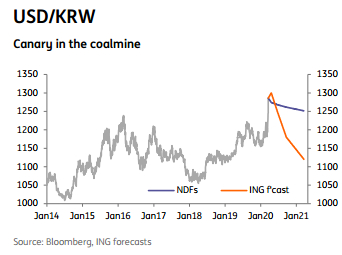 •由于疫情在韩国未迅速发展,一旦当前的市场忧虑过去,韩元可能升值。但试图识别这韩元的升值时机可能会有很大的风险,其汇率的最低点应该不止1300。