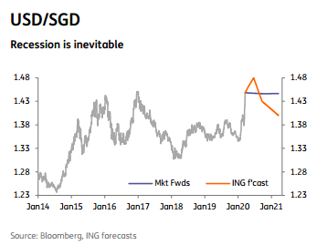 •我们认为,新加坡金融管理局将在4月份的政策评估中(甚至在那之前)宣布宽松货币政策的立场,将新元名义有效汇率区间调整至更低的水平,并将升值率设置为0。(原文:We think the MAS will pronounce the easing stance by recentring the SGD-NEER policy band at a lower level (currently about 1.5% below the mid-point of the band) with a zero rate of appreciation in the April policy review, or even before that.