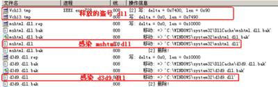 瑞星反病毒工程师介绍,此次发现的“永恒之塔感染源”与以往的盗号木马不同,该病毒没有实体运行的病毒文件,病毒运行后,首先会释放一个具有盗取“永恒之塔”游戏账号密码功能的文件Vch13.tmp,随后感染system32、 dllcache目录下的d3d9.dll 与 mshtml.dll文件,使其加载盗号文件Vch13.tmp。