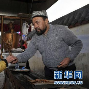 资料图片:阿里木在卖羊肉串(2010年12月1日摄)。 8年来,他把主要靠卖出30多万串羊肉串攒下的10多万元,全部捐赠出来资助了上百名贫困学生。被他的故事所打动的很多网民亲切地称他为:烤羊肉串的“慈善家”。 新华社记者欧东衢 摄