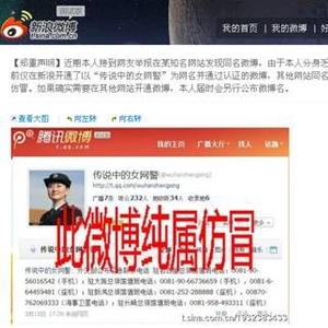 腾讯微博再次陷入抄袭门,近来非常受欢迎的“传说中的女网警”,成为了腾讯微博的最新抄袭对象。3月21日,“传说中的女网警”在新浪微博发表“郑重声明”,明确表示自己目前只在新浪开通了微博,其他网站的同名微博纯属假冒。