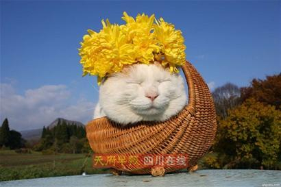 猫叔:来自日本乡下的一只超级明星猫,它的头出奇大,喜欢眯眼,喜欢戴墨镜,喜欢顶东西,还喜欢钻进狭小的篮子里睡大觉。它的主人用每天的照片与视频记录下“猫叔”的乡村田间生活。这只猫的日语名字叫“篮子猫”,在中国被叫做“猫叔”。
