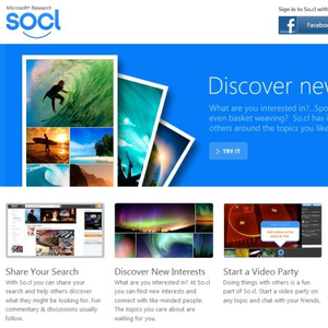 微软最新发布的So.cl社交网站是一款专门从必应搜索中提取内容,并加以分享的社交网络服务,目前已经面向所有用户开放。该服务去年12月开始测试,主要面向学生,无意与Facebook、Google+和Twitter等热门社交网络竞争。So.cl的功能并不是与好友建立联系,也不是分享生活点滴。