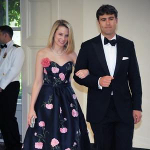2011年6月7日,华盛顿,梅耶尔和丈夫佐恰里伯格(Zachary Bogue)一起出席欢迎德国总理默克尔到访的正式晚宴,恰里伯格是一位律师,他最近创立了一支名为Data Collective的投资基金