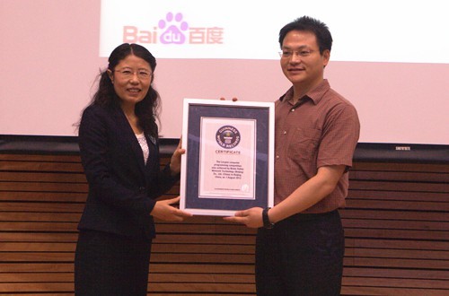 百度爱好者(Baiduer.com.cn)消息 “接下来,就是见证奇迹的时刻!”每一次令人叹为观止的魔术发生之前,魔术师刘谦都会这样说。8月7日,一场“奇迹”百度大厦五福降中天会议厅上演。经过 核实确认,吉尼斯世界纪录认证官吴晓红小姐现场宣布“2012 Astar百度之星程序大赛(Astar.baidu.com)成功挑战吉尼斯世界纪录最大规模在线编程比赛记录。”随后,吴晓红小姐将吉尼斯世界纪录认 证证书颁发至百度校园品牌总监张高博士手中。