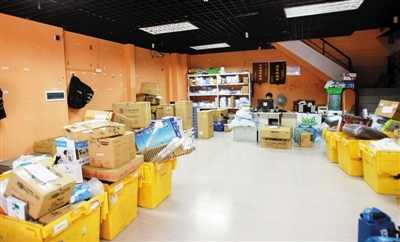昨日上午10时,记者来到了鲁班大厦对面的京东商城深圳福田自提点。台风过后的早晨间歇还下着小雨,而地处偏僻、背向主干道的京东自提点门户在此时显得尤为冷清。记者看到,在这个不足100平方米的自提点内,除了柜台的收单员外,几乎空无一人。一个个大小不一的快递包裹满满当当地叠放在各个角落,甚至连门口两边都被高高垒砌的储物箱所占据。