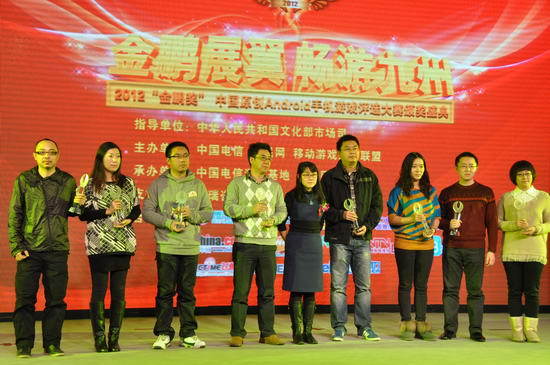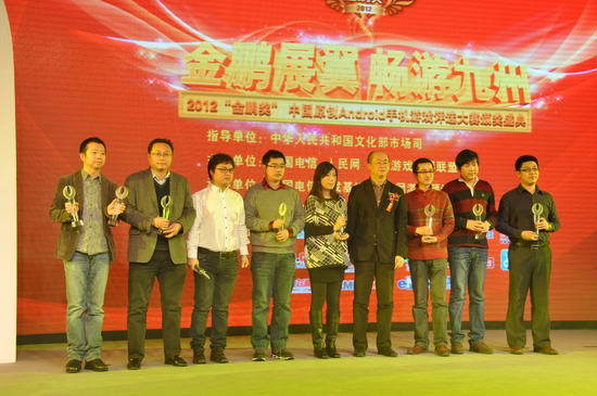 致力行业团结做强做大,扶持国产原创走好走远。2013年1月8日,由文化部支持与指导,中国电信与人民网、移动游戏发展联盟联合举办、中国电信游戏基地与人民网游戏频道联合承办的第二届“金鹏奖”中国原创Android手游大赛颁奖典礼在京举行。作为国内最具权威的手机游戏评选大赛,本届“金鹏奖”共有300余款已在国内运营和有计划进入市场运营的主流国产原创产品参与,共同角逐包括最受欢迎手机游戏、最具创意手机游戏在内的13个奖项。历时3个月,8000万玩家共同参与,30位专家、媒体评委专业打分,第二届“金鹏奖”所有奖项已全部产生。