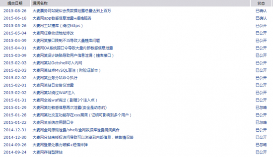 2014年6月,大麦网服务器漏洞未修补可能导致770W用户数据泄露;