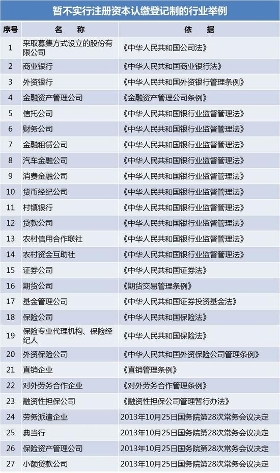 根据《国务院关于印发注册资本登记制度改革方案的通知》(国发[2014]7号),暂不实行注册资本认缴登记制的行业多为金融和准金融行业,列举如下,相关行业的创业者可进一步参照相关的规定: