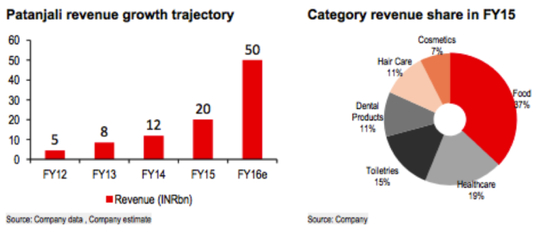 以大师本身的大批信徒为基础,并辅以弘扬印度韦达养生学的公司理念,Patnajali公司迅速发展壮大。据汇丰银行数据预测,Pantajiali在2016财年将实现营业收入48.8亿元,同比增长150%。公司旗下品牌草药类牙膏目前约占国内牙膏市场4.5%的市场份额。尽管市场份额看起来并不大,然而汇丰银行分析,受其影响,占据牙膏市场57%的市场份额的高露洁印度公司,其在孟买交易所的股票在过去11个月内下降了22%。