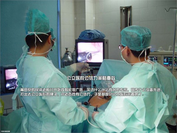 莆田系的民资老板们开始找报社做广告,采访什么什么有名的专家,宣传什么设备先进,打出去公立医院的牌子,对老百姓有公信力,于是都跑到公立医院来看病了。