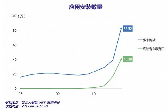 “这还是在苹果下架一大批蹭热点山寨手游后达到的成绩。”一位手游观察人士表示。短短一周,“霸权”被打破。从极光提供的数据显示,《终结者2:审判日》在10月启动公开测试后,短时间内安装量呈指数性增长,短时间内便达到40万量级安装。《小米枪战》安装量为同期《终结者2》的两倍,达到了80多万。