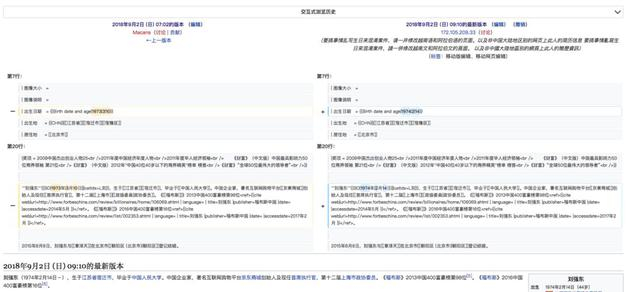 9:10分这个页面又被172.105.209.33修订为最新版本,文中刘强东生日全部替换为“1974年2月14日”,并附上备注“要搞事情乱写生日来混淆案件,请一并修改越南语和阿拉伯语的页面。以及非中国大陆地区别的网页上此人的简历信息。”