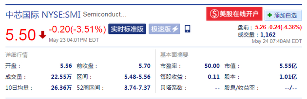 新浪科技讯 北京时间5月24日晚间消息,中芯国际(NYSE:SMI; SEHK: 981)美股盘前跌4.36%,此前宣布将自愿从纽交所退市。