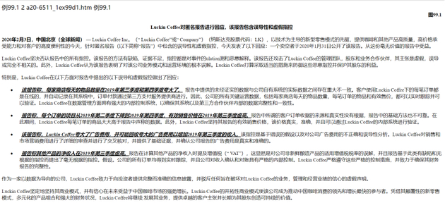 从2019年第二季度开始,公司首席运营官兼董事刘剑先生以及向他汇报工作的几名员工从事了不当行为,包括捏造某些交易。特别委员会建议采取某些临时补救措施,包括解雇刘剑先生和涉嫌不当行为的雇员,以及中止与已确定的虚假交易涉及方的合同和交易。董事会接受了特别委员会的建议,并针对目前确定的参与伪造交易的个人和当事方实施了这些建议。瑞幸称,将对做出不当行为的个人采取一切适当的行动,包括法律行动。