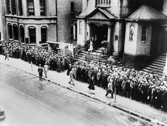 1930年排队领取教堂免费餐食的纽约民众