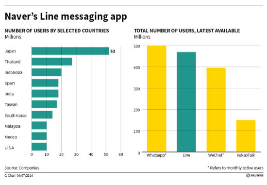 Naver的Line即时通讯应用相关图表: