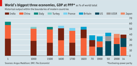 看图:过去2000年世界三大经济体的演变