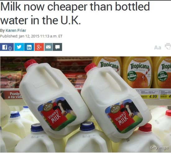新浪财经讯 北京时间1月13日凌晨消息 英国的消费者应该欢呼了,由于超市之间大打价格战,现在牛奶价格比水还要便宜了,但农场主可能有点倒霉。