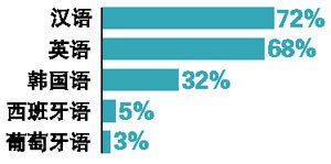 也许认为英语不再重要了也是日本人对英语“放弃治疗”的一个原因。在最近一项针对日本国民的调查中,72%的人认为中文是未来日本人最应该学习的语言,英语以68%排名第二;其次是韩语、西班牙语。
