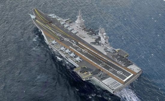 俄罗斯红星电视台报道,位于圣彼得堡的克雷洛夫国家科研中心正在设计一艘航空母舰,并在视频画面中展示了这艘航母的设计模型。从画面上看,这艘设计中的俄罗斯航母在尺寸上与美军现役的核动力航母相当。