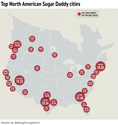 新浪美股讯 北京时间30日晚 专为老男人与年轻女子牵线的SeekingArrangement约会网站日前公布一份报告,报告将奥斯丁评为今年北美甜爹之都。 在奥斯丁每一千个成年男人中,便有23.24人是甜爹(SugarDaddy)。