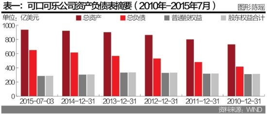 但即便如此,考虑到可口可乐庞大的规模,动用巨大的杠杆不可避免。近五年来,可口可乐的负债快速增长,资产负债率已经从2010年底的57%上升到2015年年中的69.4%。如果动用杠杆,可口可乐的负债率可能进一步上升。再加上近年来可口可乐的销售收入和净利润出现“双降”(详见表二可口可乐公司利润表摘要),3G资本和巴菲特即使收购成功,短期也将面临很大的压力。