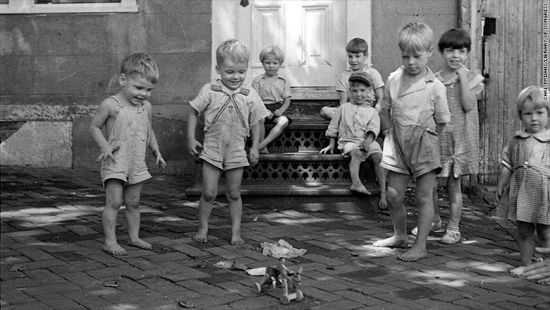 这是当时华盛顿特区附近的乔治敦城,贫困的儿童在人行道上玩耍。