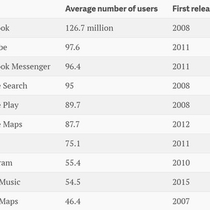 真正让人吃惊的是苹果的地图和音乐。该公司的音乐app还是颇激起了不少吐槽之声的,至于他们的地图,更是一度沦为笑柄。由此,不难推断,这两者的上榜至少在一定程度上应该感谢人类共有的惰性——至少一部分苹果用户都会原封不动地接受iPhone预装的app。在最近的季度当中,苹果售出了4800万部手机。
