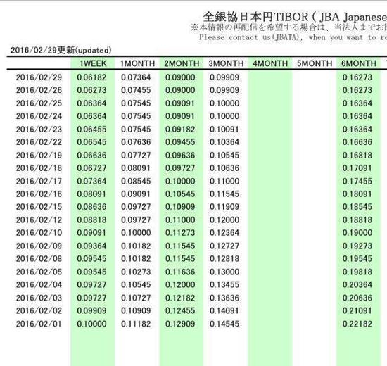 “日本银行不仅普遍下调存款利率,企业贷款利率(即银行的盈利来源)近期也有所下降,因为TIBOR(东京同业拆借利率)近期大幅走低。”日本三井住友银行某交易员对《第一财经日报》记者表示,担心今年银行加薪的计划可能受到“负利率”影响。