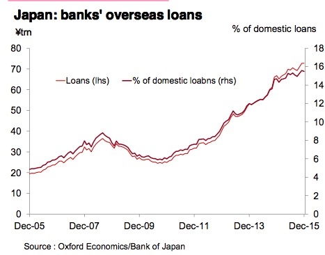 相关数据显示,过去四年以来,日本本国银行已经增加了海外贷业务,其对国内贷款的比例已经增加了2.5倍。“负利率政策可能成为推动日本银行海外贷款业务的主要动力。”泰勒对记者表示。
