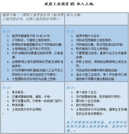 李中东:印度的土地是永久产权的,所以第一点不同,就是政府工业园区的土地只租不卖,而私人的土地我们则可以通过购买拥有永久产权。