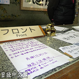 对此,曾留学日本的中国籍所有者表示“我们没必要进行宣传。因为中国的旅行社会直接介绍游客过来”。据称每天约有40名中国游客在该旅馆住宿。正午过后旅馆内的电灯就关了。中国游客通常在晚上7点左右到达旅馆,第二天一早又赶忙前往下一个宿地。据称在旅馆住宿中国客人一般晚上也很少外出。当地的出租车司机带着复杂的表情说“中国游客不会像日本人一样乘出租车去购物和吃饭,基本不会在这花钱”。