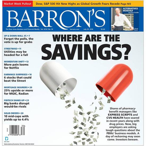 快捷药方股价现为76美元,体现了安森保险事件令人担忧的因素。快捷药方预期市盈率有12.5倍。要是大客户群起反抗,这家单纯以PBM为业的公司利润和股价料显著下降。CVS大约39%的运营收入来自药品给付管理和专卖药房,所以它也可能面临重击,尤其是其市盈率高达17倍。联合健康只有16%的运营利润来自PBM部门,所以它那18倍的市盈率也易受冲击,但脆弱程度不如其它公司。自本刊十几年前盛赞快捷药方前途无量以来,这个行业领头羊的股价上涨了10倍。快捷药方的好日子已经结束。