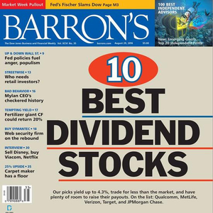 导读:《巴伦周刊》最新一期封面文章按照股息收益率超过2.5%、2017年预期市盈率低于17.5倍、股息支付率低于80%的标准对将标普500指数成分股公司进行筛选,从中选出威瑞森电信、大都会人寿、艾伯维、陶氏化学、高通、思科系统、塔吉特、嘉年华、摩根大通和美国合众银行等十支高收益美股。