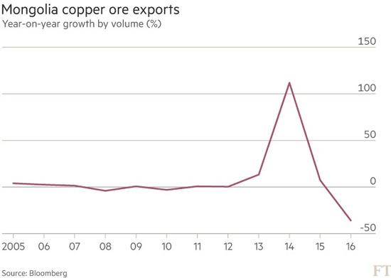 在大宗商品繁荣期,蒙古曾是新兴市场经济体中的宠儿。外国矿业公司蜂拥而入,开发该国草地和沙漠下蕴藏的矿产资源,受此推动蒙古2011年的国内生产总值(GDP)增幅高达17%。但在繁荣周期顶点依靠债务融资的支出狂潮过去后,这个内陆国现已成为受大宗商品市场下行打击最重的国家之一。